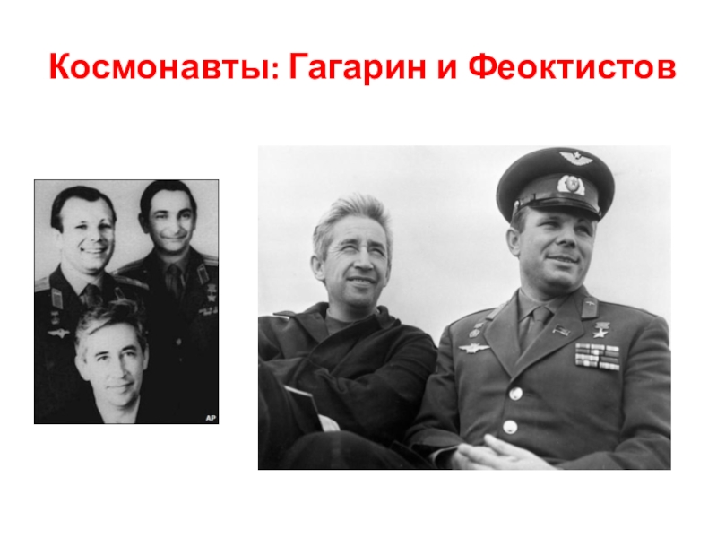 Слайд 13Космонавты: Гагарин и Феоктистов