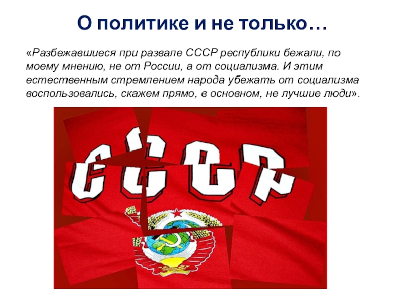 моему мнению, не от России, а от социализма. И этим естественным стремлением народа убежать от социализма воспользовались, скажем прямо, в основном, не лучшие люди».