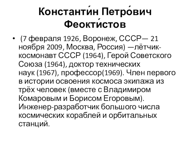 Слайд 2Константи́н Петро́вич Феокти́стов