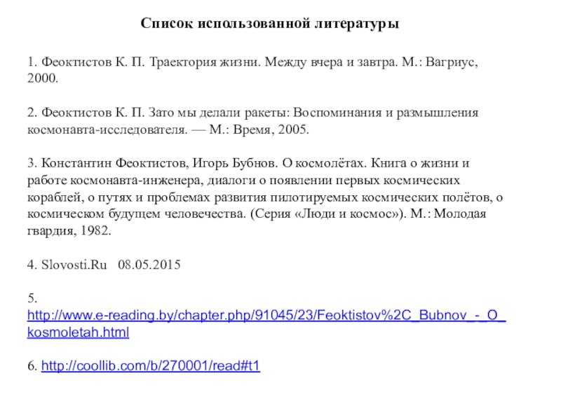 5. http://www.e-reading.by/chapter.php/91045/23/Feoktistov%2C_Bubnov_-_O_kosmoletah.html