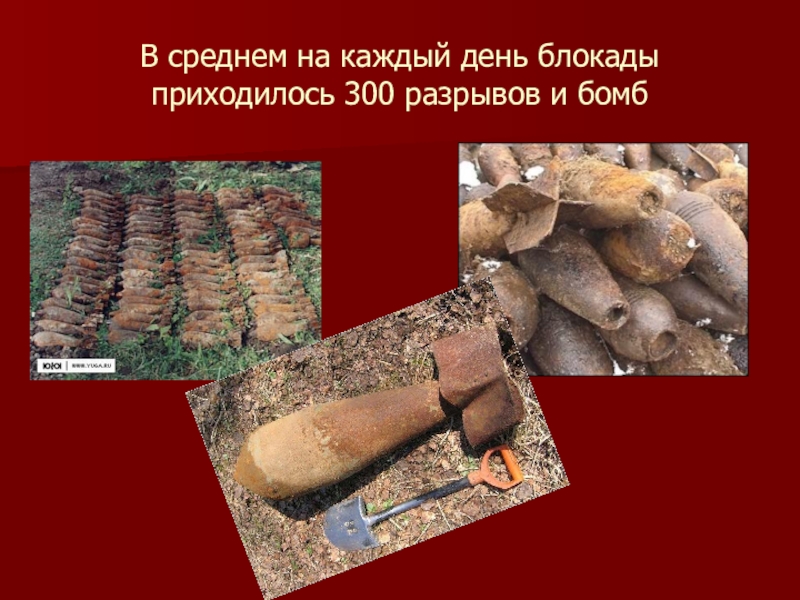 Слайд 10В среднем на каждый день блокады приходилось 300 разрывов и бомб