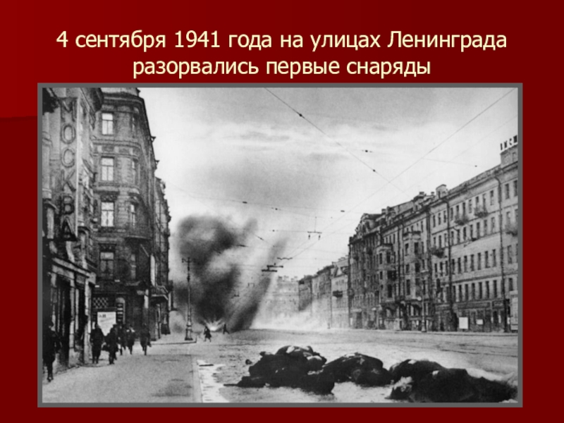 Слайд 54 сентября 1941 года на улицах Ленинграда разорвались первые снаряды