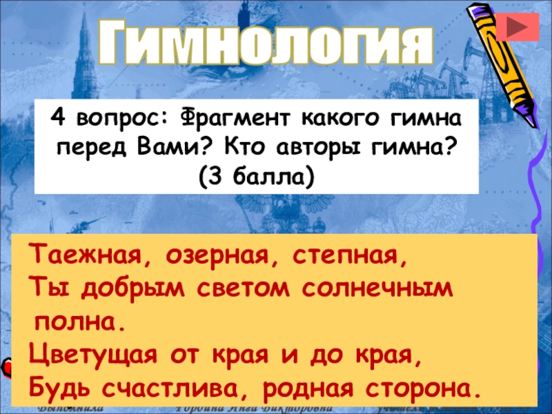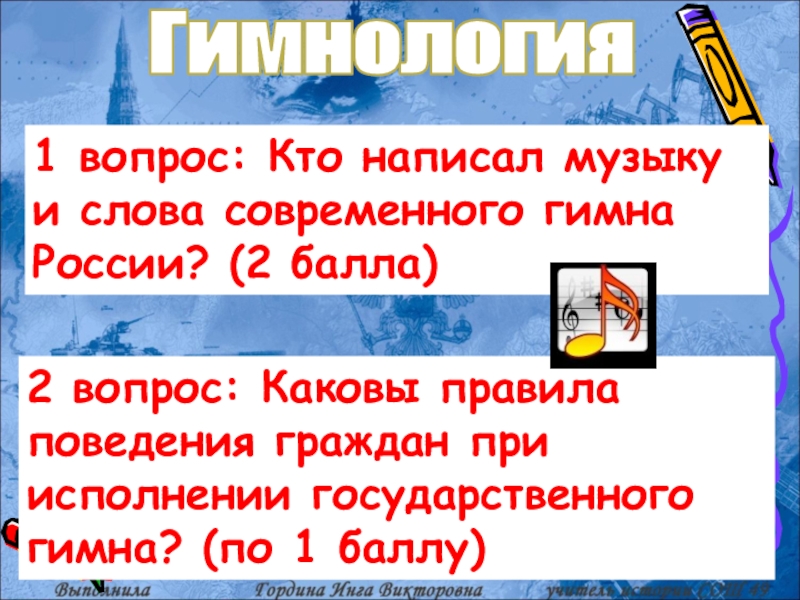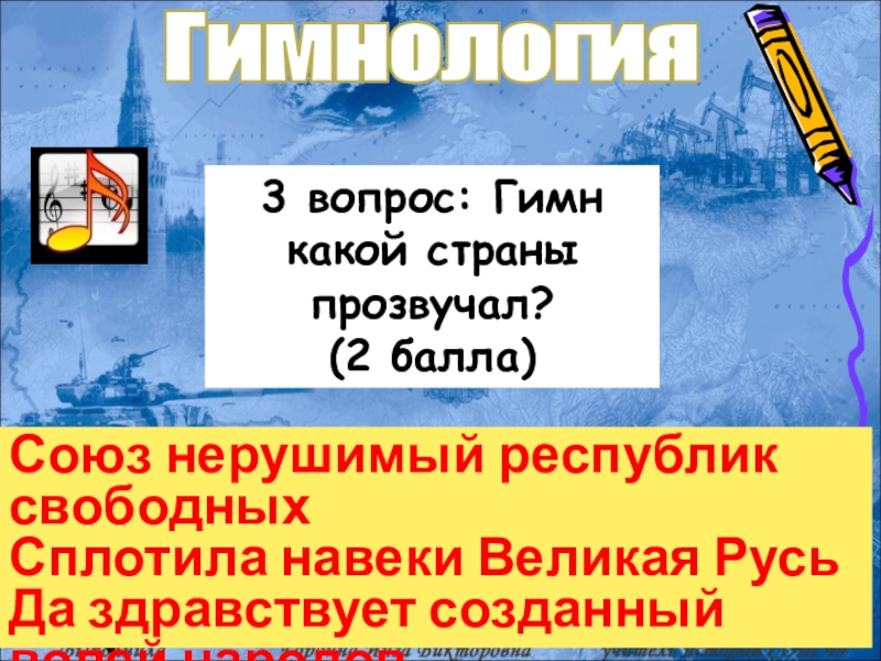 4 вопрос: Фрагмент какого гимна перед Вами? Кто авторы гимна? (3 балла)