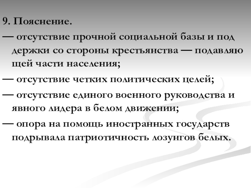В белом движении отсутствовало единство и взаимодействие. Оно было разрозненным.