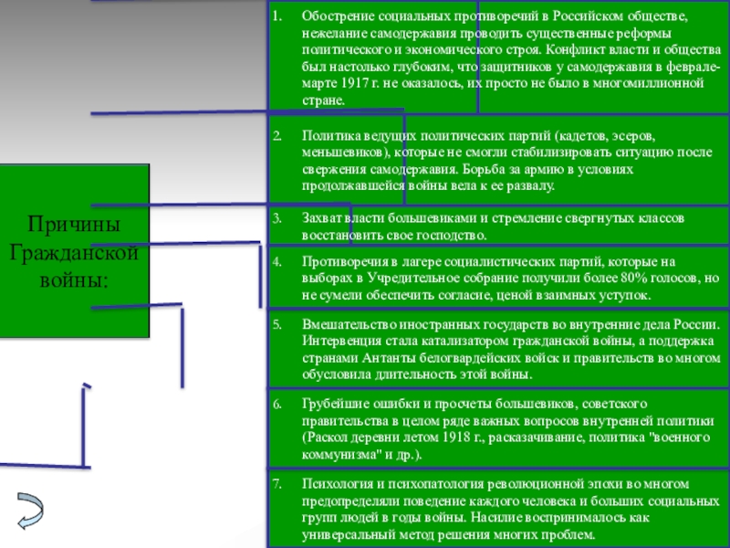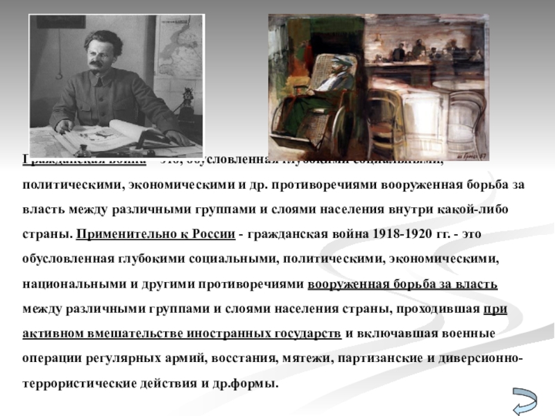 Захват власти большевиками и стремление свергнутых классов восстановить свое господство.
