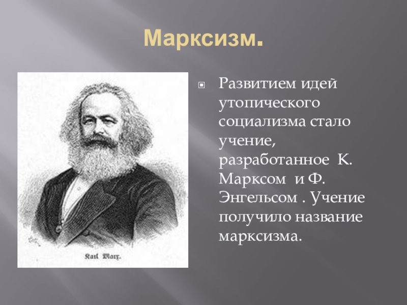 Развитием идей утопического социализма стало учение, разработанное К. Марксом и Ф.