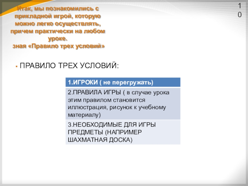 ПРАВИЛО ТРЕХ УСЛОВИЙ: