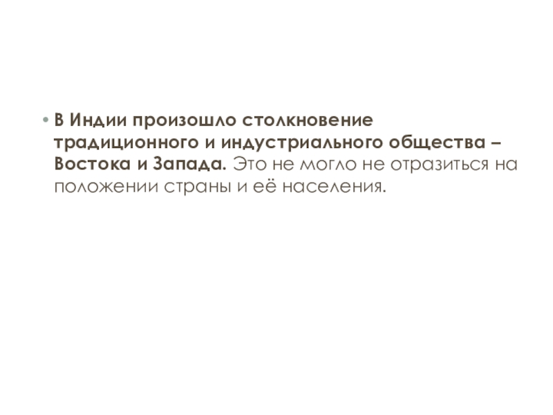 Слайд 7В Индии произошло столкновение традиционного и индустриального общества – Востока и