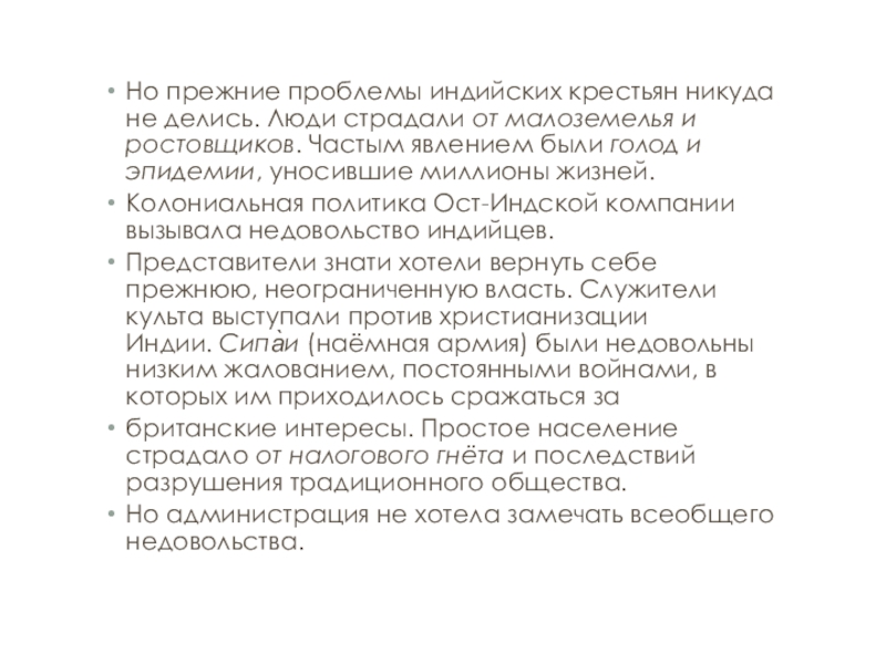 Слайд 18Но прежние проблемы индийских крестьян никуда не делись. Люди страдали от малоземелья