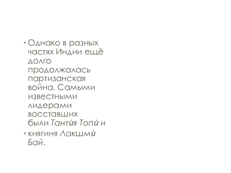 Слайд 25Однако в разных частях Индии ещё долго продолжалась партизанская война. Самыми
