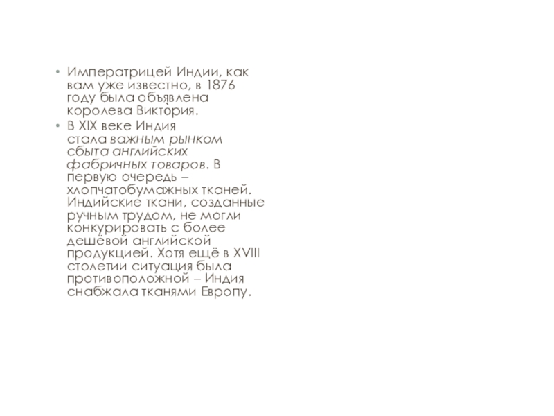 Слайд 12Императрицей Индии, как вам уже известно, в 1876 году была объявлена