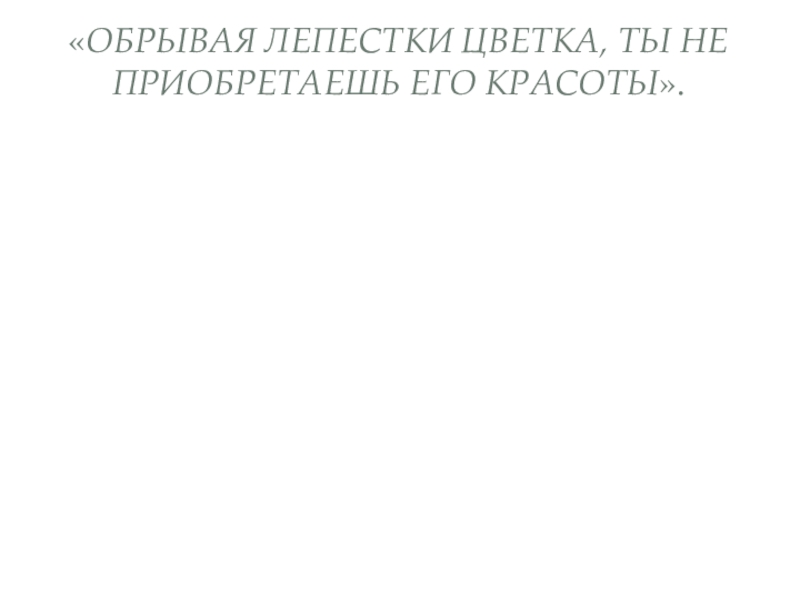 Слайд 2«Обрывая лепестки цветка, ты не приобретаешь его красоты».