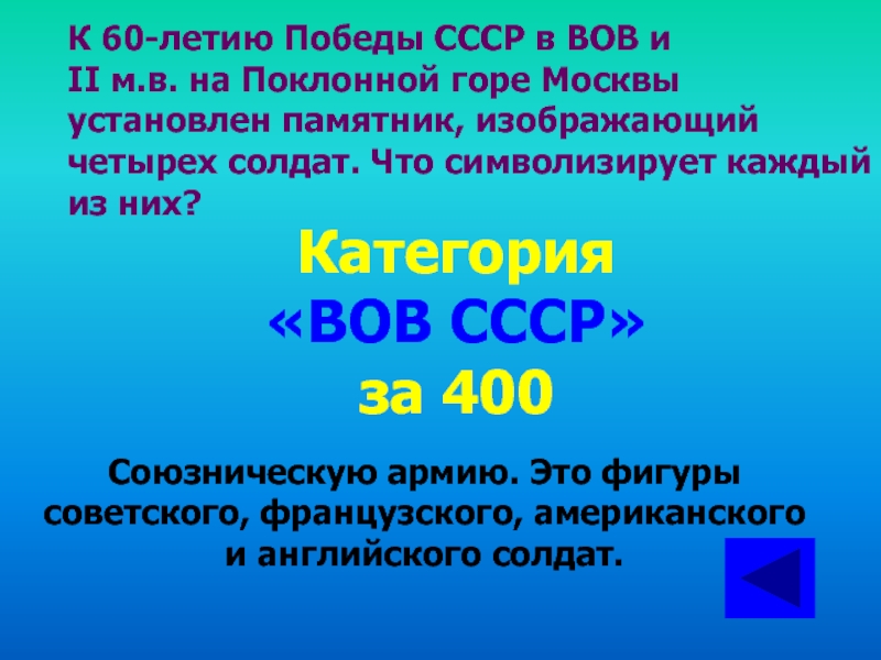 Союзническую армию. Это фигуры советского, французского, американского и английского солдат.