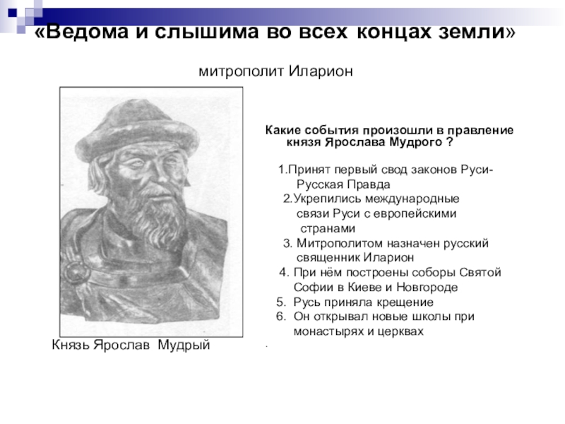 Какие события произошли в правление князя Ярослава Мудрого ?