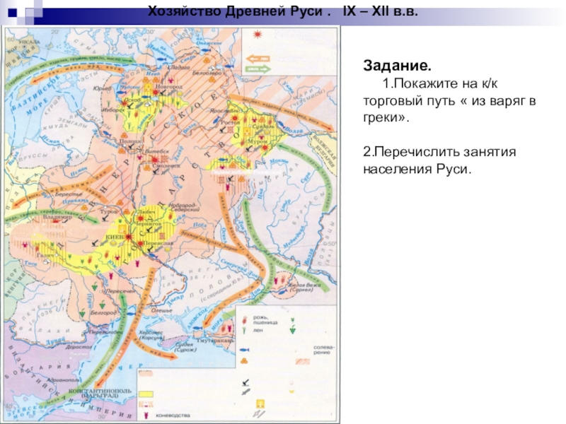 1.Покажите на к/к торговый путь « из варяг в греки».