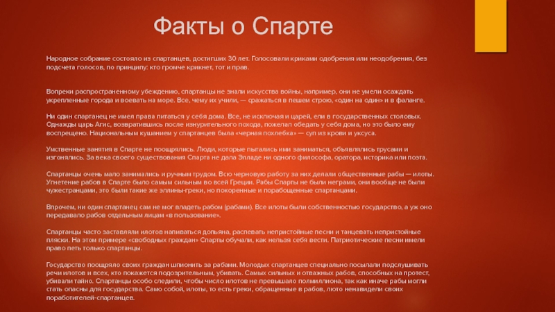 Слайд 4Факты о Спарте