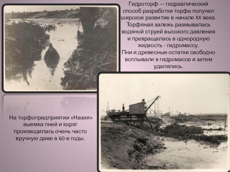 На торфопредприятии «Назия» выемка пней и коряг производилась очень часто вручную даже в 60-е годы.