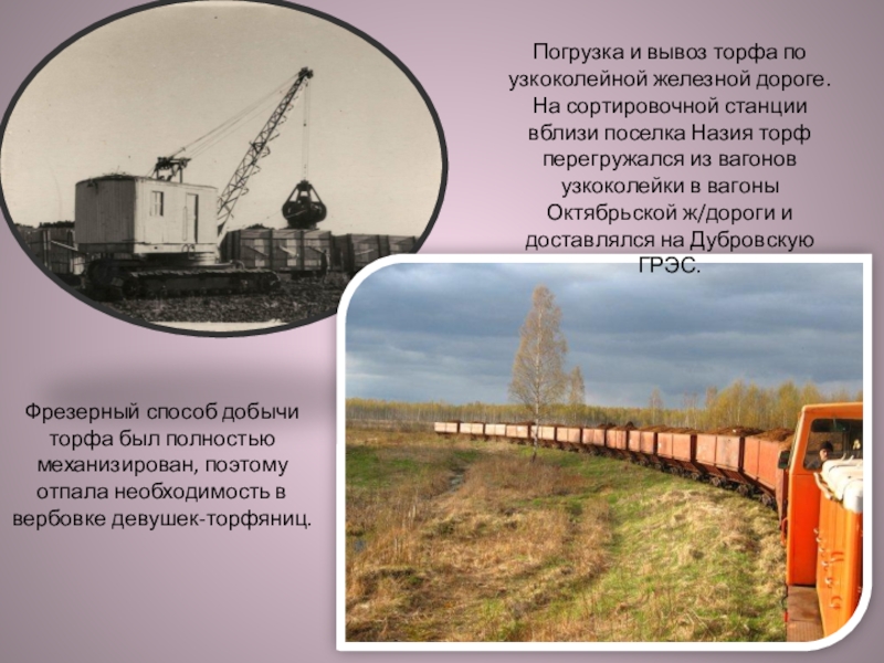 Фрезерный способ добычи торфа был полностью механизирован, поэтому отпала необходимость в вербовке девушек-торфяниц.