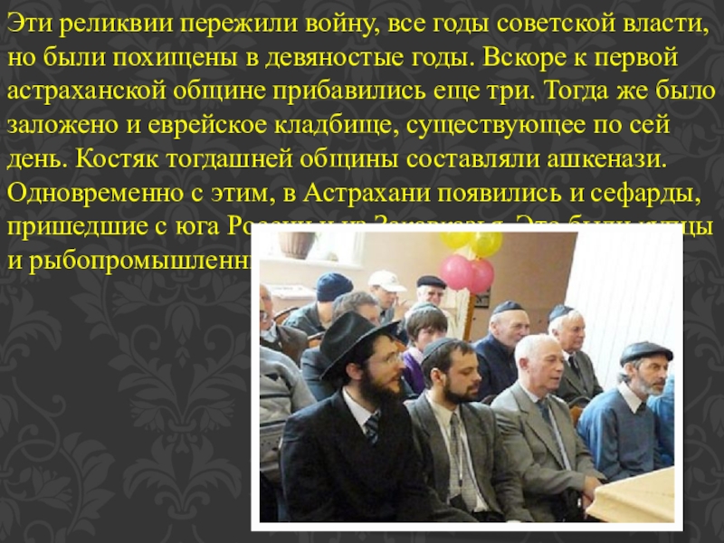Слайд 3Они-то и стали первыми членами первой известной нам астраханской еврейской общины,