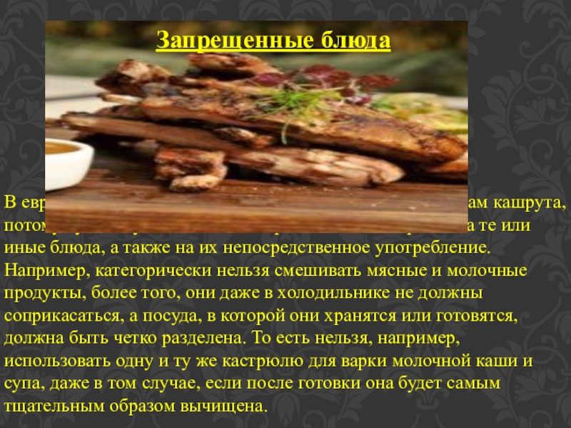 Слайд 13Необходимо заметить, что правило, согласно которому разделяются молочные и мясные блюда