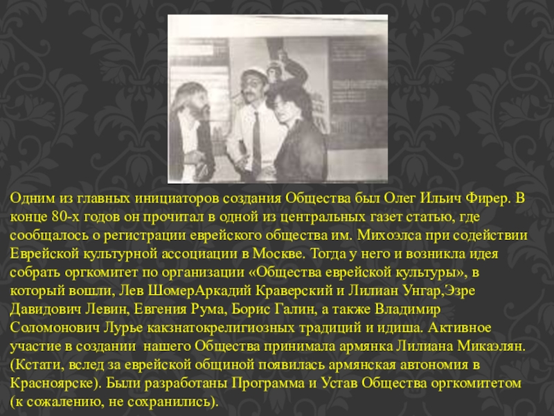 Слайд 17Одним из главных инициаторов создания Общества был Олег Ильич Фирер. В