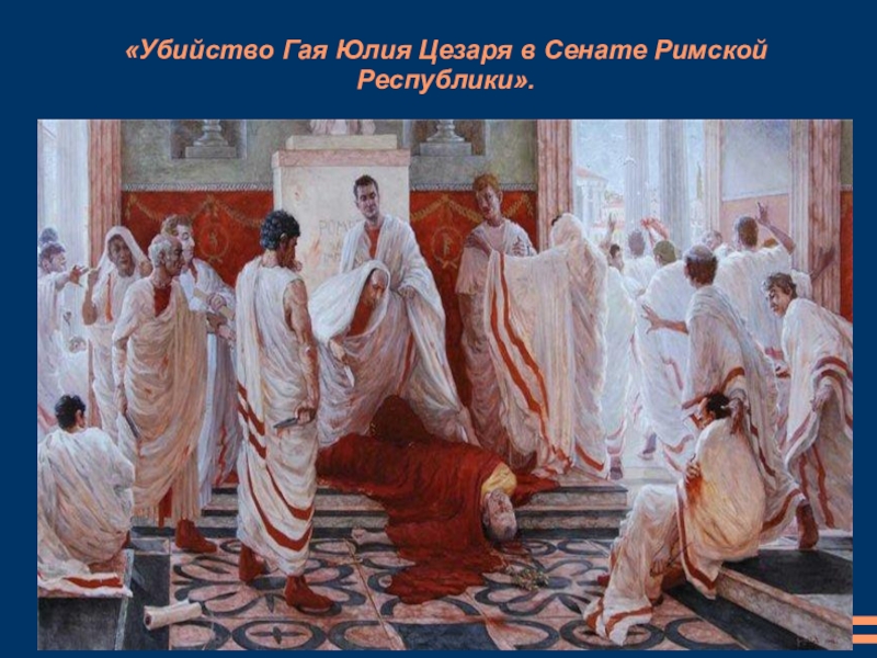 Слайд 6«Убийство Гая Юлия Цезаря в Сенате Римской Республики».