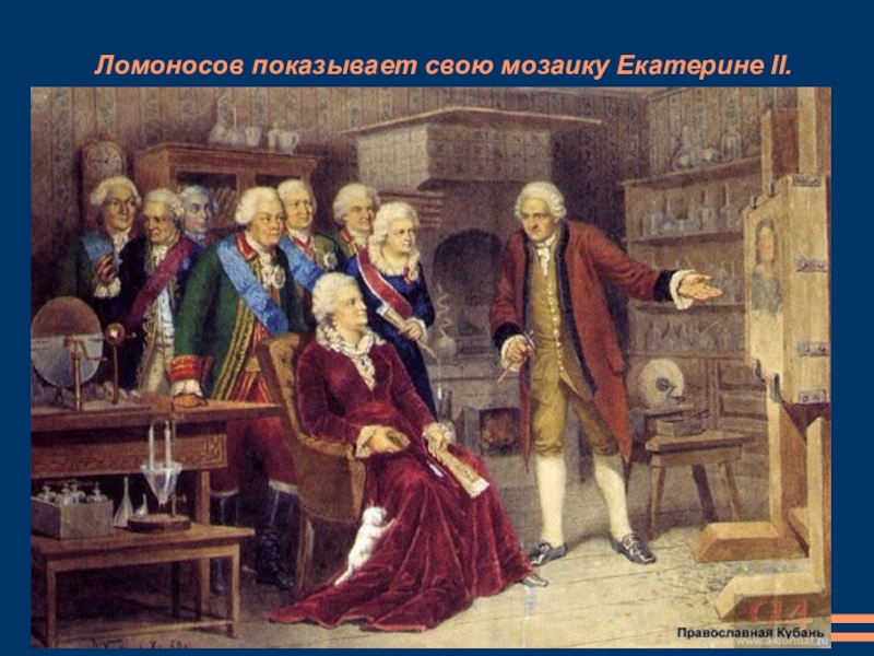 Слайд 9Ломоносов показывает свою мозаику Екатерине II.