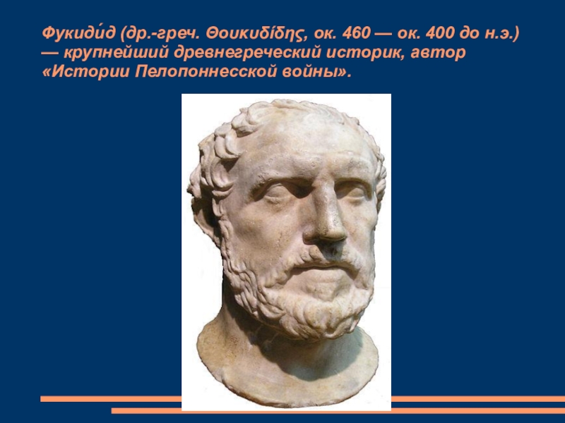 Слайд 17Фукиди́д (др.-греч. Θουκυδίδης, ок. 460 — ок. 400 до н.э.) —