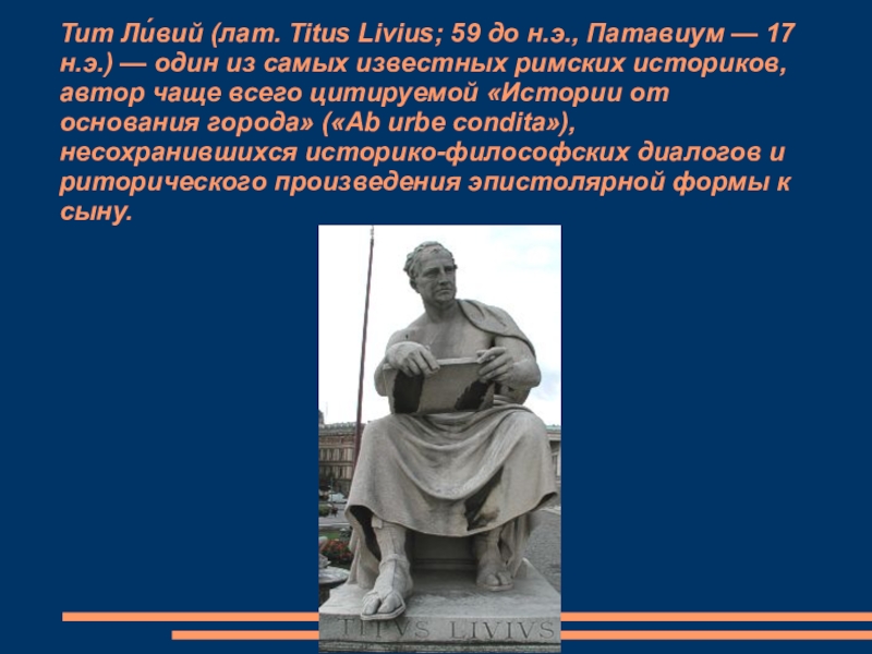 Слайд 19Тит Ли́вий (лат. Titus Livius; 59 до н.э., Патавиум — 17