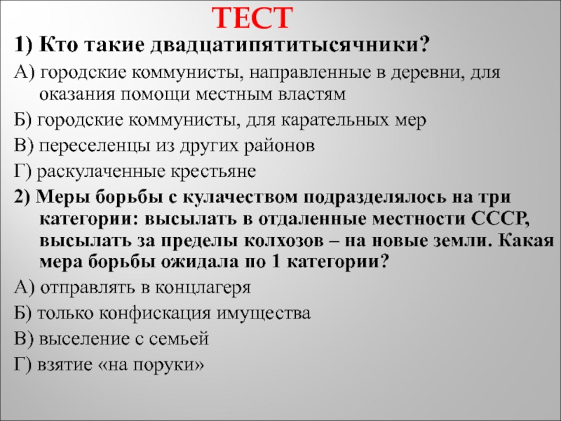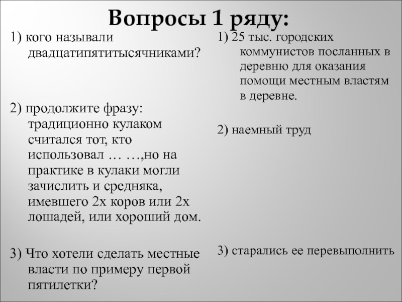 1) 25 тыс. городских коммунистов посланных в деревню для оказания помощи местным властям в деревне.