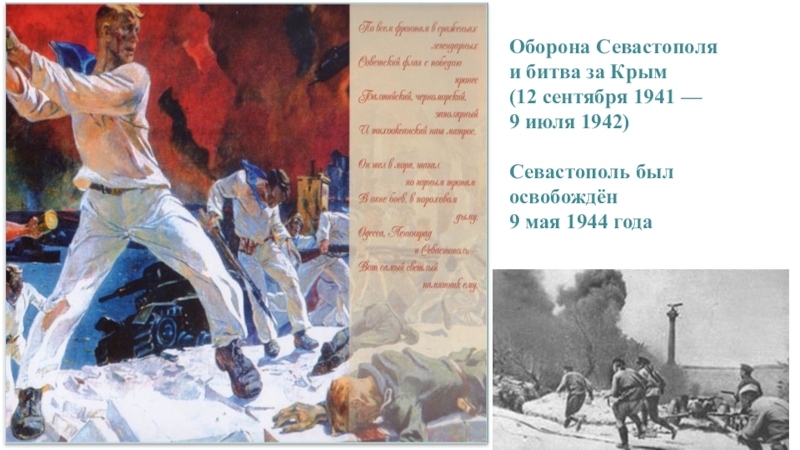 Слайд 10Оборона Севастополя и битва за Крым  (12 сентября 1941 —  9 июля 1942)  Севастополь был освобождён 9