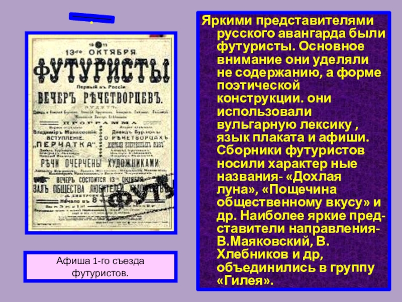 Отказ от реализма порождает такие новые модернистские течения как : акмеизм, эмажинизм, символизм, футуризм