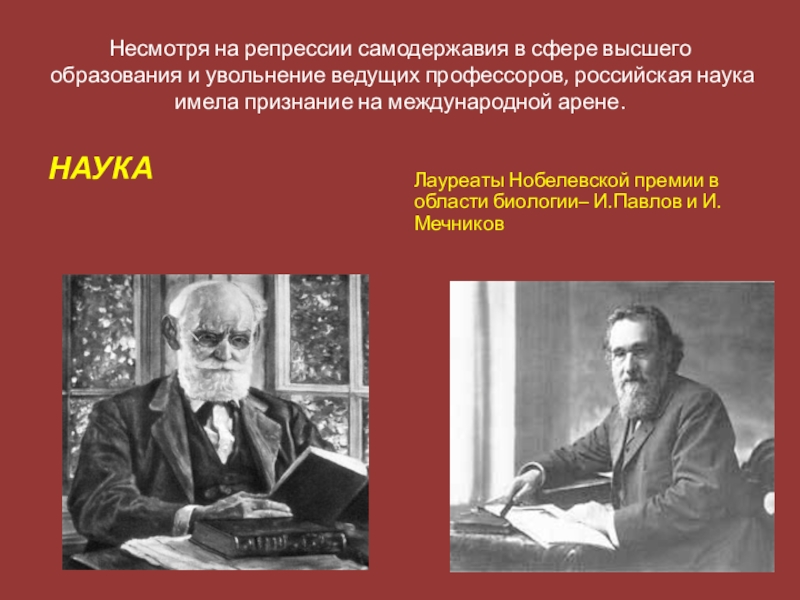 Лауреаты Нобелевской премии в области биологии– И.Павлов и И.Мечников