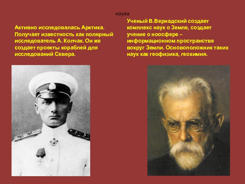 Ученый В.Вернадский создает комплекс наук о Земле, создает учение о ноосфере – информационном пространстве вокруг Земли. Основоположник таких наук как геофизика, геохимия.