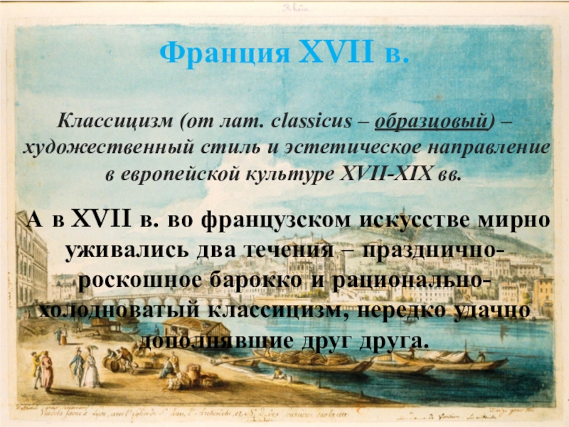 А в XVII в. во французском искусстве мирно уживались два течения – празднично-роскошное барокко и рационально-холодноватый классицизм, нередко удачно дополнявшие друг друга.