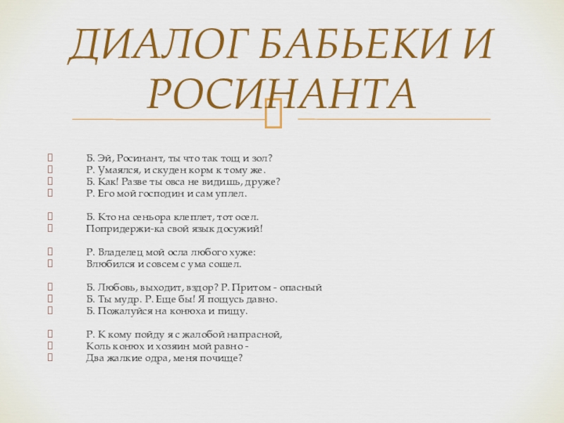 ДИАЛОГ БАБЬЕКИ И РОСИНАНТА