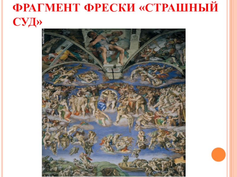 Слайд 13МИКЕЛАНДЖЕЛО БУОНАРРОТИ, ФРАГМЕНТ ФРЕСКИ «СТРАШНЫЙ СУД»