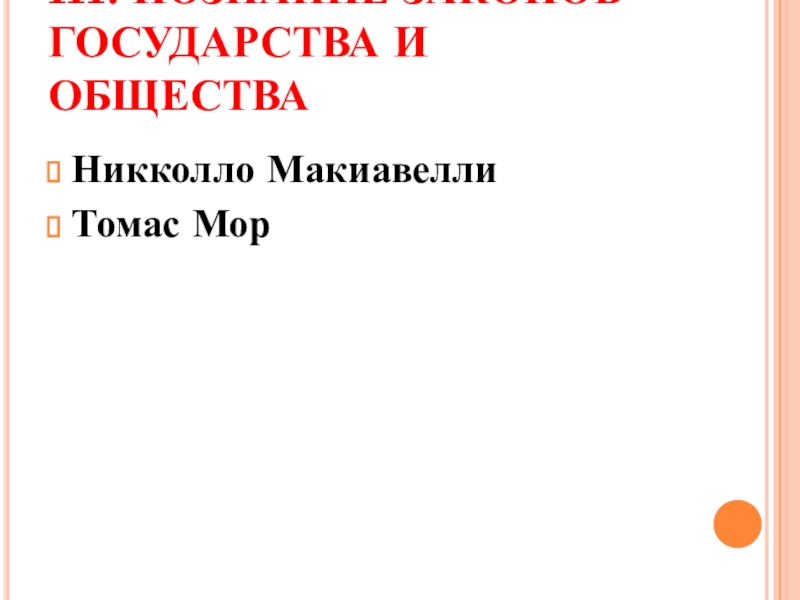 III. ПОЗНАНИЕ ЗАКОНОВ ГОСУДАРСТВА И ОБЩЕСТВАНикколло МакиавеллиТомас Мор