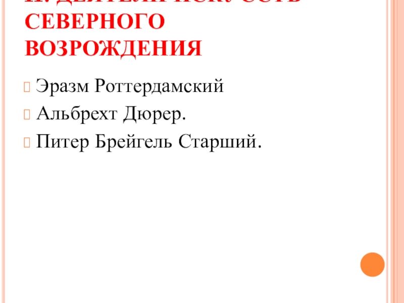 Слайд 28II. ДЕЯТЕЛИ ИСКУССТВ СЕВЕРНОГО ВОЗРОЖДЕНИЯ