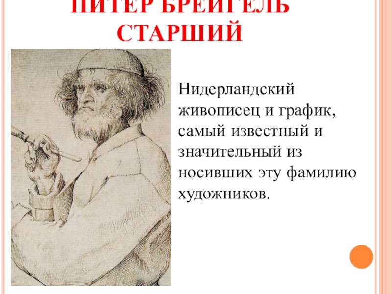 ПИТЕР БРЕЙГЕЛЬ СТАРШИЙНидерландский живописец и график, самый известный и значительный из носивших эту фамилию художников.