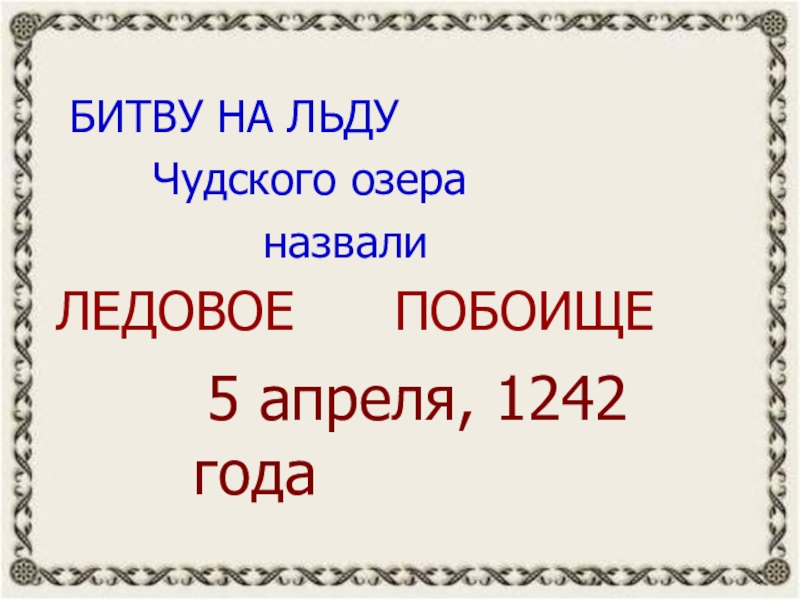 задумал дать на берегу Чудского озера, вошедшее в историю под названием Ледовое побоище.