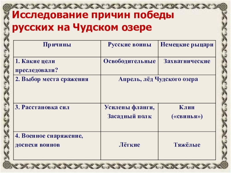 Князь Александр хорошо знал военную тактику Ливонского Ордена в сражениях. Тяжеловооружённая,
