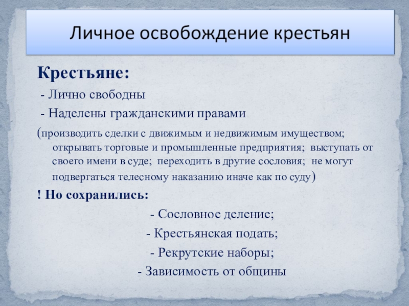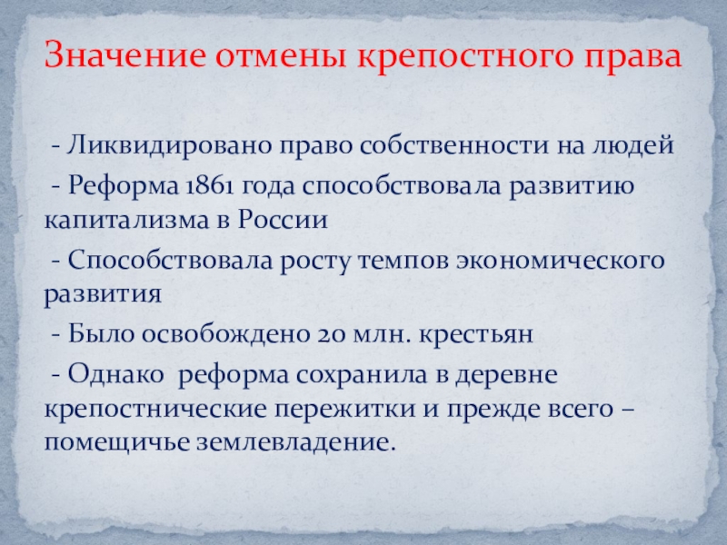 Значение отмены крепостного права