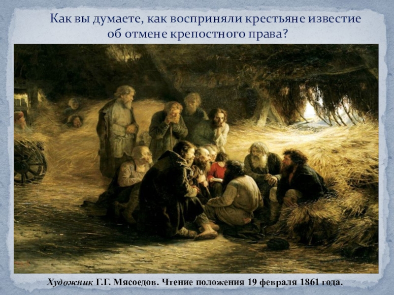 Художник Г.Г. Мясоедов. Чтение положения 19 февраля 1861 года.