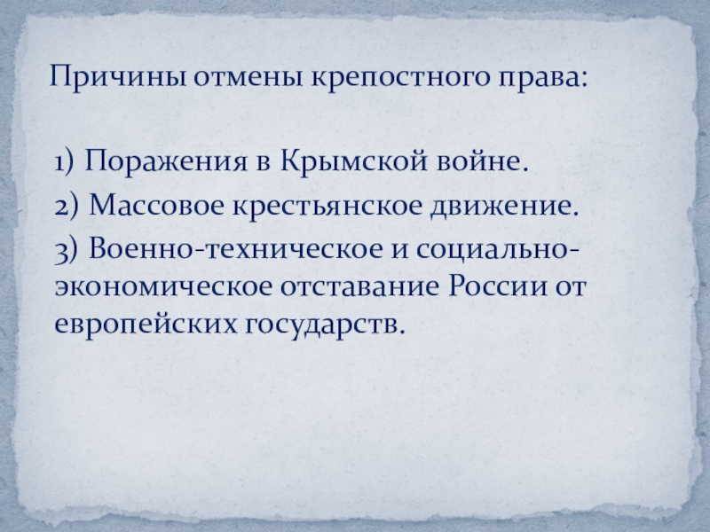 Причины отмены крепостного права:
