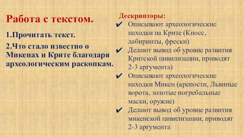 Делают вывод об уровне развития микенской цивилизации, приводят 2-3 аргумента