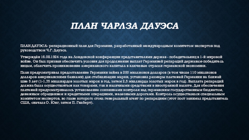 ПЛАН ДАУЭСА- репарационный план для Германии, разработанный международным комитетом