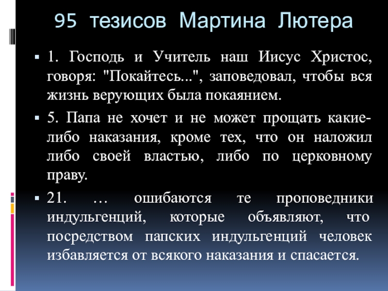 95 тезисов Мартина Лютера1. Господь и Учитель наш Иисус Христос, говоря: