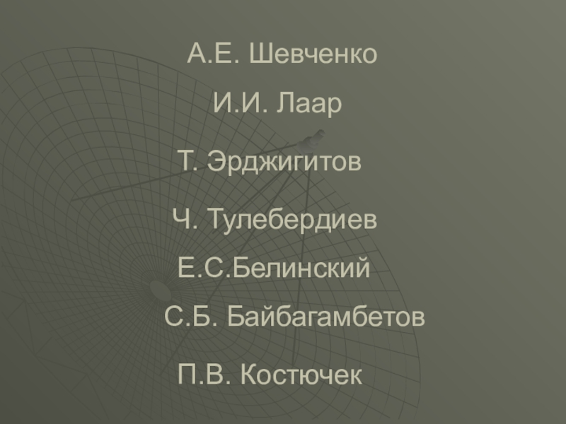 А.Е. ШевченкоИ.И. ЛаарТ. ЭрджигитовЧ. ТулебердиевЕ.С.БелинскийС.Б. БайбагамбетовП.В. Костючек