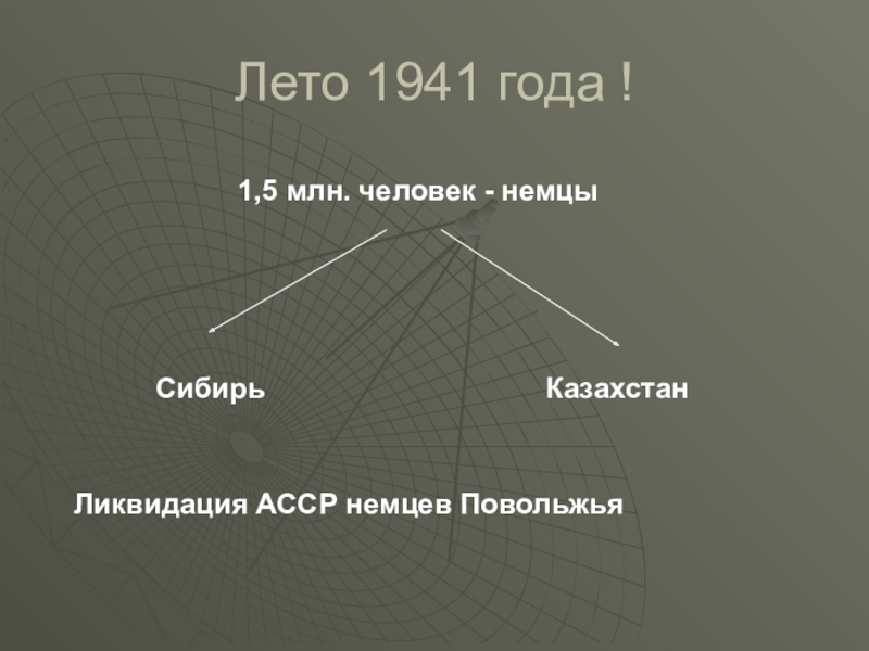 Лето 1941 года !1,5 млн. человек - немцыСибирьКазахстанЛиквидация АССР немцев Повольжья